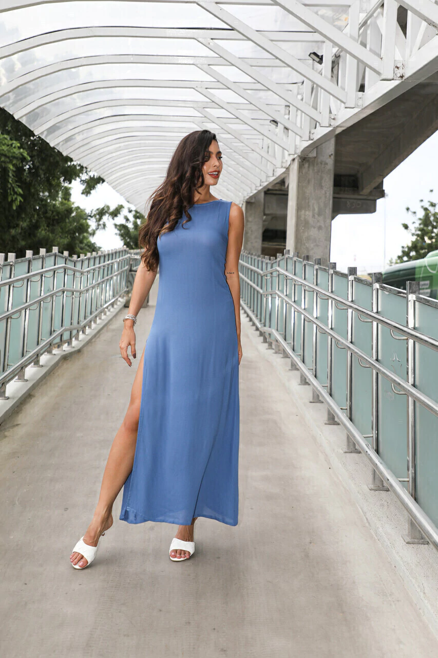 A fenda lateral adiciona um toque sensual e moderno, enquanto o decote fechado e as linhas limpas tornam a peça sofisticada e versátil. Ideal para ocasiões que pedem estilo com praticidade, ele transita facilmente entre o casual e o chic, acompanhando a mulher contemporânea em diferentes momentos.